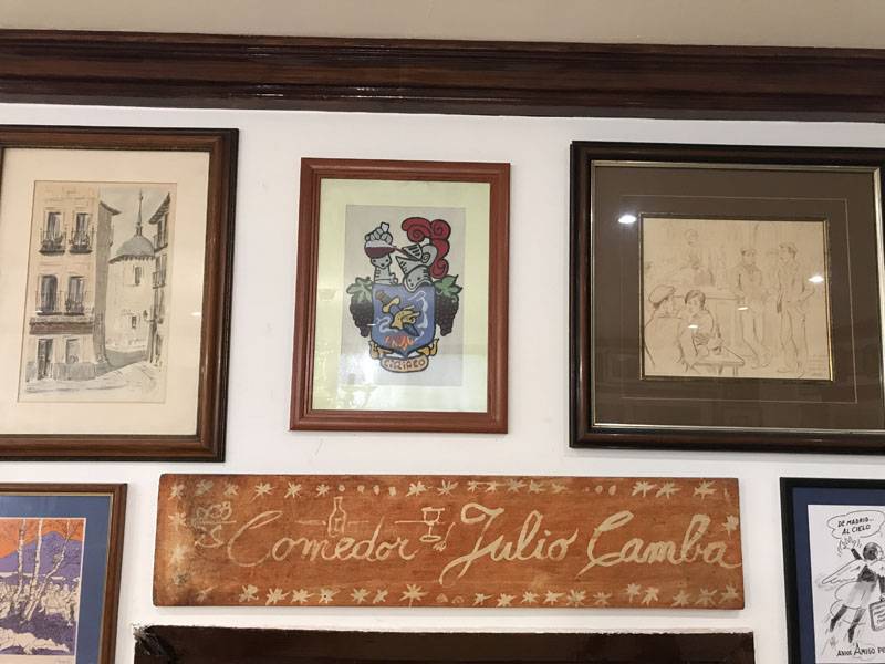 Los comedores, que aparecen ahora luminosos y despojados de sus viejos cortinajes, se encuentran articulados a través de una cocina abierta que muestra las entrañas de la vieja taberna. Las paredes son una miscelánea de imágenes dispuestas por temáticas: la tauromaquia, el regicidio frustrado, las celebridades y, al fondo, el Salón Real, en el que se suceden los recuerdos monárquicos y gran variedad de efectos militares, todo ello bajo la atenta mirada del Apóstol Santiago que, esculpido en piedra, preside la escena. No en vano, Casa Ciriaco, que también alberga dos cuevas de enorme interés, es un lugar de peregrinaje donde, muy probablemente, los parroquianos alcanzan, antes o después, algún tipo de ‘indulgencia plenaria’.